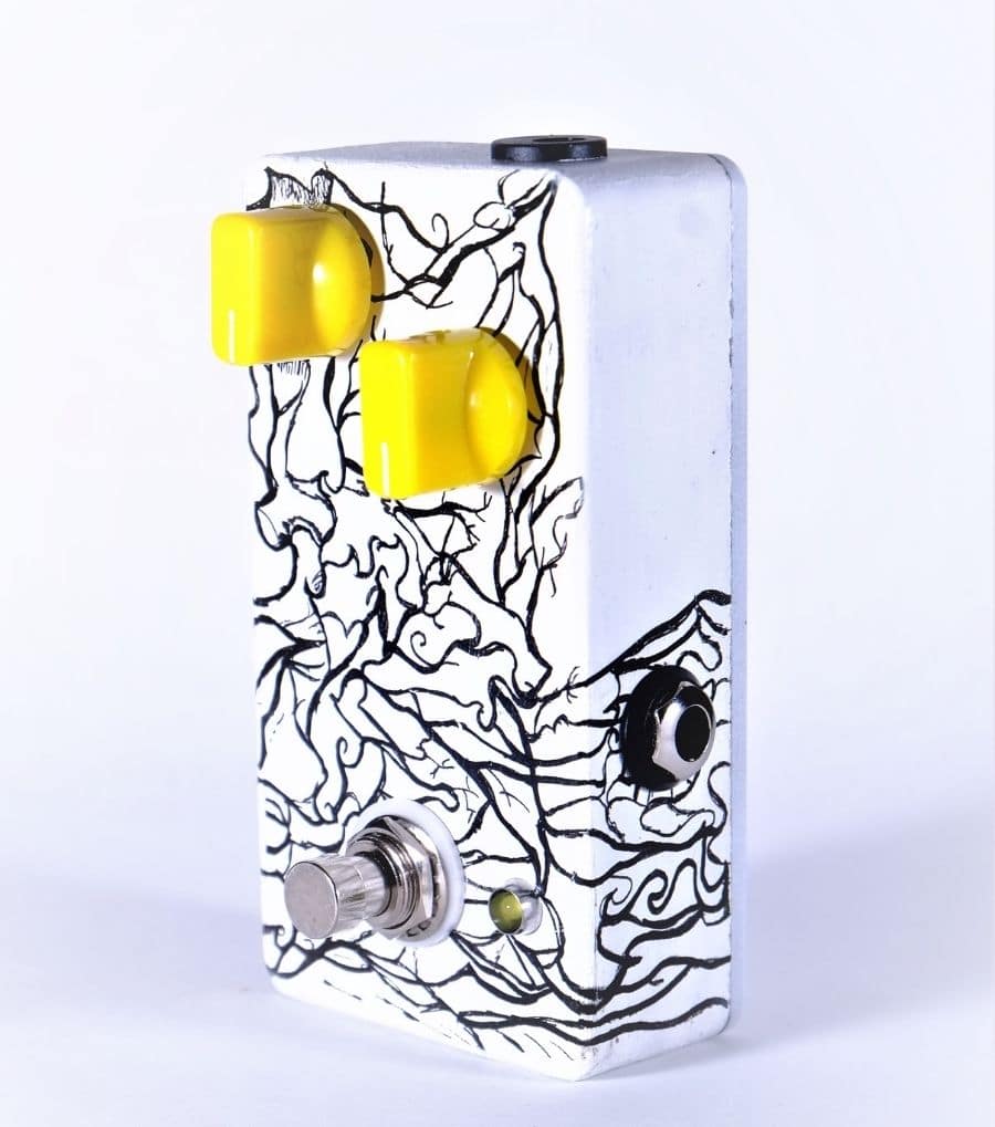 As for the circuit, is Volture’s staple flavor of fuzz, with a silicon transistor and a hard-as-nails diode cranking the sound to oblivion. A nice, round, full-bodied fuzz, great for some stoner riffs, or some cut-through solos.  Will work well on bass as well!